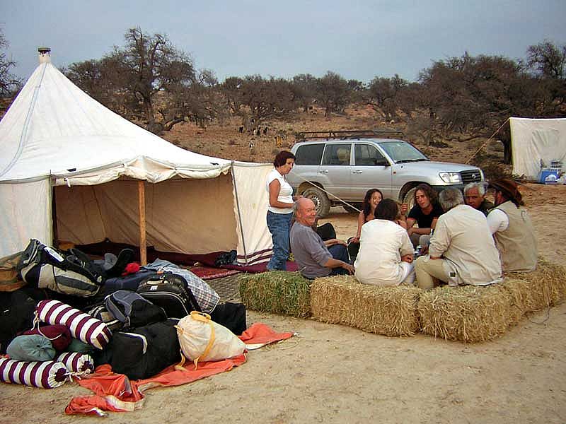 Du overnatter i berber telte eller to-mandstelt. Det er aldeles behageligt, svalende og aldeles sikkert. Maden tilberedes af vores kok over åben ild, og det er faktisk imponerende, hvad han kan fremtrylle af lækre egnsretter.