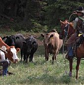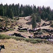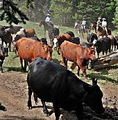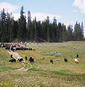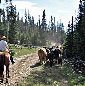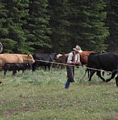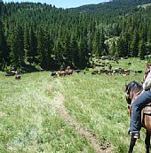 Vi driver 300 køer og kalve til toppen af Big Horn Mountain i Wyoming til deres sommergræsgange. Turen begynder ved de grønne, bløde bakker ved East Pass Creek og du tilbagelægger i alt 48 miles mens du langsomt klatrer op til 4000 fod til skovgrænsen.