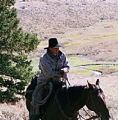 Det kan anbefales at leje regnfrakke hos ranchen, for det er en kraftig kvalitet og regntøj i 2 dele er for besværligt at trække i og af.
