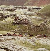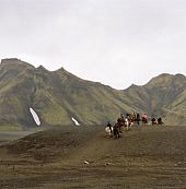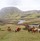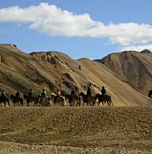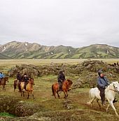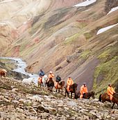 Fra gården Fellsmúli tæt på vulkanen Hekla rider vi mod dalen Landmannalaugar, som er verdenskendt for sine farverige rhyolitfjelde, udstrakte lavamarker og varme kilder.