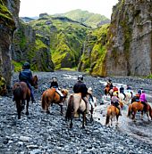 Vi rider gennem dalen Thórsmörk, der er en af Islands smukkeste steder, der en gang helligholdtes til asaguden Thor. Her forenes de grønne skove med nærheden til glaciærerne Myrdalsjökull og Eyjafjallajökull. Turen passer fint til dem, der vil ride en kortere tur men endda opleve mange sider af islands varierede natur.