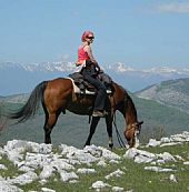 Trail gennem “Colle dell'Orso” – bjørnens bakke. Turens high-lights er de betagende naturscenerier fra plateauet Colle dell'Orso, de vilde heste, som lever på plateauet og god italiensk mad og vin.