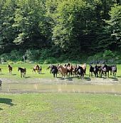 På hestegården er der 12-15 fine Quarter og Paint heste, som er vant til at ride western ridning i bjergene. Hestene er gode og turene er lagt an på at give rytteren en unik naturoplevelse i uspoleret natur - og naturligvis samtidig bo komfortabelt og nyde lækker italiensk mad og vin.