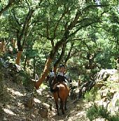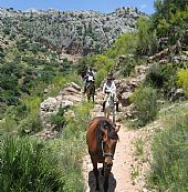 Ridning i Mijas bjergene på små stier med eukalyptustræer og dale, hvor oleanderen blomstrer fra begyndelsen af sommeren. En todages tur over bjergene til Alhaurin med picnic. Højdepunktet er den store strandtur til kysten ved Atlanterhavet. Ridningen bliver suppleret med slentreture gennem hvide landsbyer, et Andalusisk hesteshow, en aften med flamenco og en barbecue.