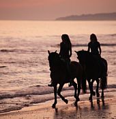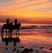 Du behøver ikke at være erfaren rytter - der er en hest også til dig og du kan vælge en rolig tur langs stranden i solnedgangen.