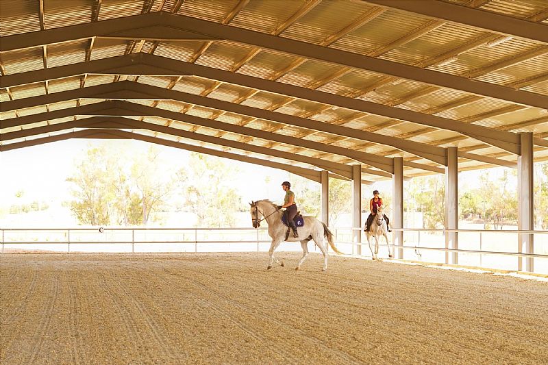 Der undervises i et moderne ridehus 20*60 m med sand og fiber belægning, der lever op til topniveau og på en udendørs ridebane. Der er sprinkleranlæg så ridebanerne kan vandes regelmæssigt og dermed undgå støv under undervisningen.
